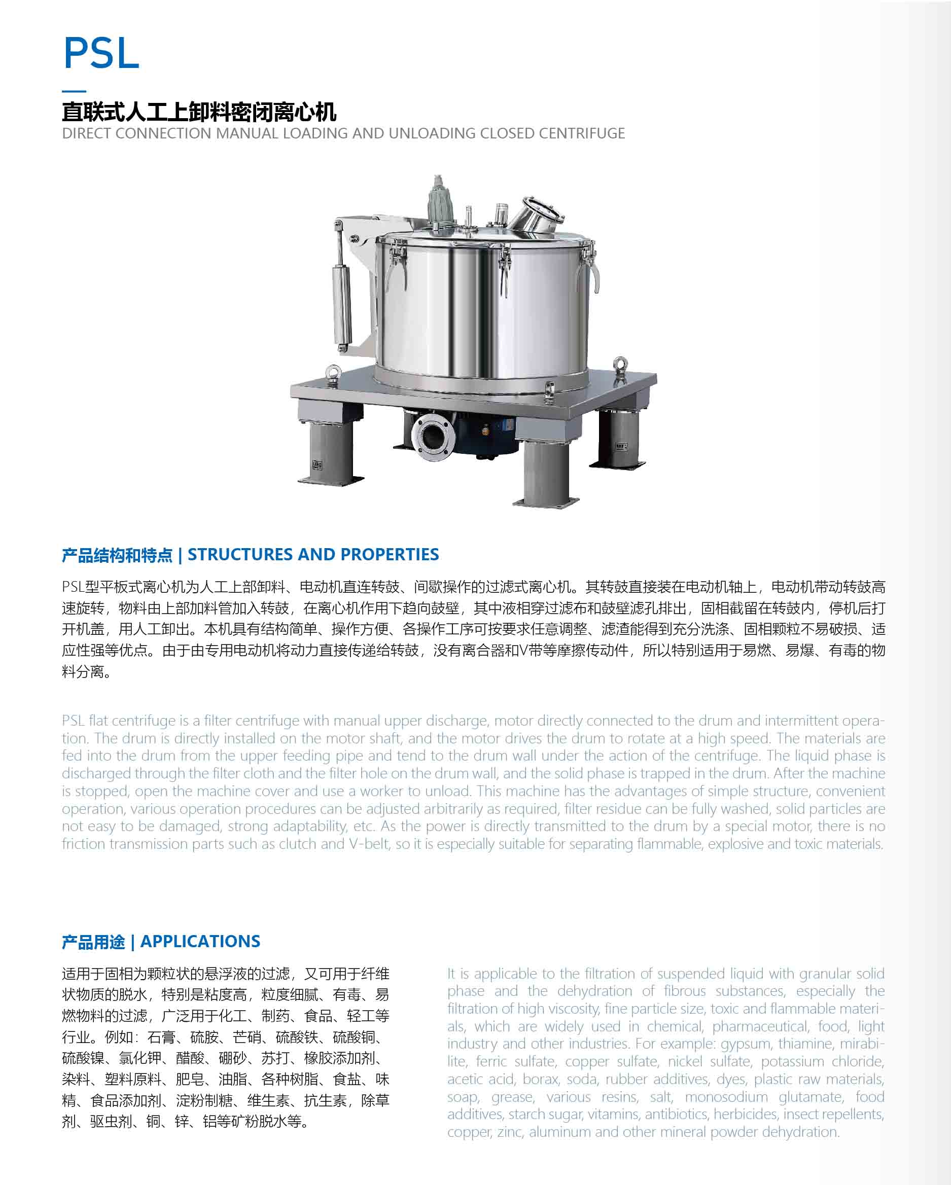 PSL 直联式人工上卸料密闭离心机